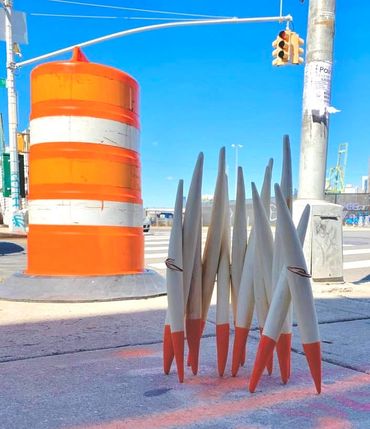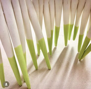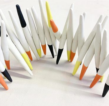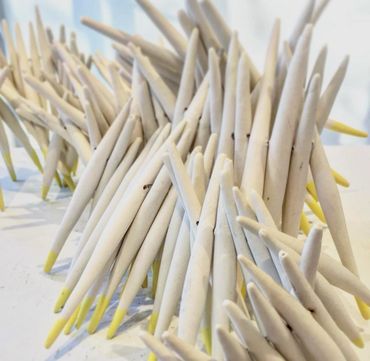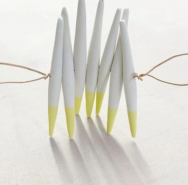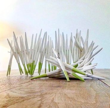 allowing the grouping to balance on it's tips. They can be displayed in a line or in a sculpural bundle.